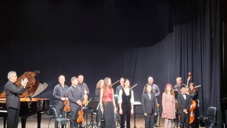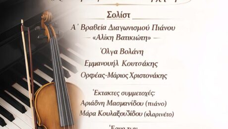 Οι μικροί σολίστες, η ορχήστρα και ο μαέστρος που τους διεύθυνε , στην μεγαλειώδη βραδινή Πασχαλιάτικη συναυλία στις 15 Απριλίου 2026 στο Βενιζέλειο ωδείο,στην κατάμεστη από κόσμο αίθουσα θεάτρου Μανώλης Σκουλούδης, στα πλαίσια της παρουσίασης των περσινών νικητών το 6ου διαγωνισμού πιάνου Αλίκη Βατικιώτη.